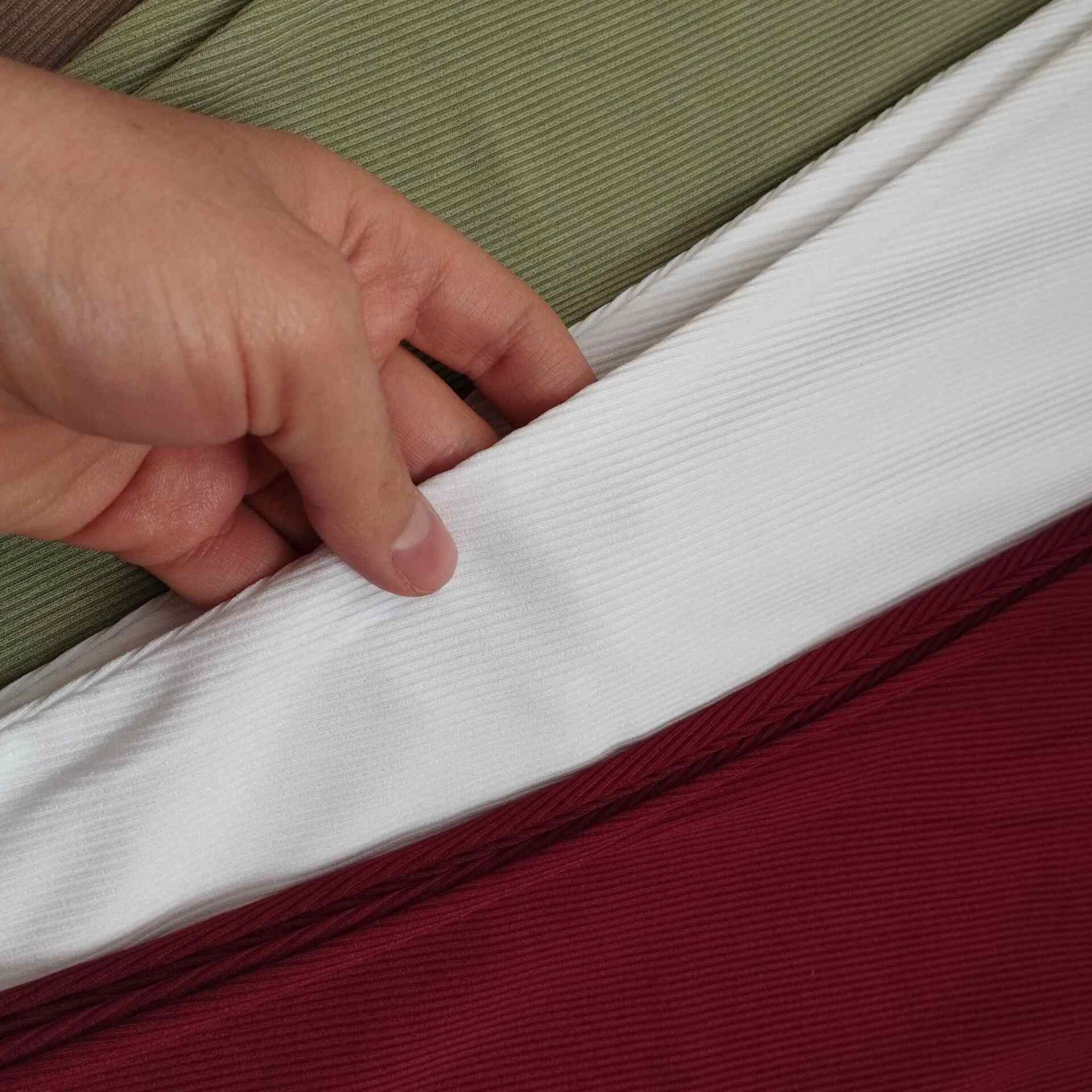 ضخامت پارچه کاملاً متعادل است؛ نه نازک و بدننما (بهجز رنگ سفید) و نه ضخیم و سنگین، بنابراین برای استفاده ورزشی کاملاً کاربردی است.